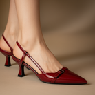 De Zantinas Hakken zijn gemaakt van soepel veganistisch leer met een glanzende lakfinish, wat een verfijnde en opvallende uitstraling geeft die prachtig het licht vangt. De taps toelopende hak van 4,5 cm zorgt voor subtiele hoogte zonder in te leveren op stabiliteit, terwijl de zachte leren voering ademend comfort biedt, zelfs bij langdurig dragen. Deze hakken combineren elegantie en draagcomfort voor een stijlvol en zelfverzekerd resultaat.