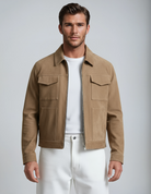Het jack is gemaakt van rijk, zacht suède aan de buitenkant voor een premium gevoel en visuele diepte. De front-zip maakt het eenvoudig om te combineren en laagjes te dragen. De praktische indeling met borst- en zijzakken brengt functionaliteit en stijl samen. Het gestructureerde silhouet behoudt zijn vorm en biedt modern stedelijk comfort. Het jack is ideaal voor de overgang tussen lente en herfst en kan moeiteloos in elk seizoen worden gedragen.