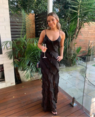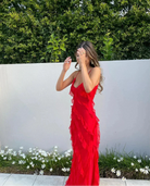 Het vloeiende ontwerp streelt de vloer bij elke stap en zorgt voor een dramatisch effect dat perfect past bij zonsondergangfeesten, bruiloften op bijzondere locaties of avonden waarin je alle ogen op je wilt gericht zien. Met de Scarlet Eve Dress straal je moeiteloos charme en allure uit.