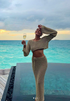 De set bestaat uit een elegante crop top met lange mouwen en een zwierige maxi-rok — samen vormen ze een moeiteloos stijlvolle combinatie die zowel modern als vrouwelijk oogt.