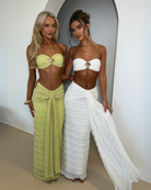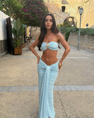 Waarom je de Urmella Tweedelige Set zult liefhebben: de crinkle-stof is lichtgewicht, ademend en heeft een natuurlijke, door de zee geïnspireerde textuur. De bandeau top zonder bandjes heeft een strakke pasvorm met een goudkleurige schelpring in het midden voor een elegante, kustachtige uitstraling. De maxi rok met hoge taille heeft een strikdetail en valt vloeiend voor een verlengend effect. Door de tweedelige veelzijdigheid kun je de set los of samen dragen voor moeiteloze vakantie-outfits. Ongevoerd en natuurlijk vallend, perfect voor warme zomerdagen en zwoele avonden aan zee.