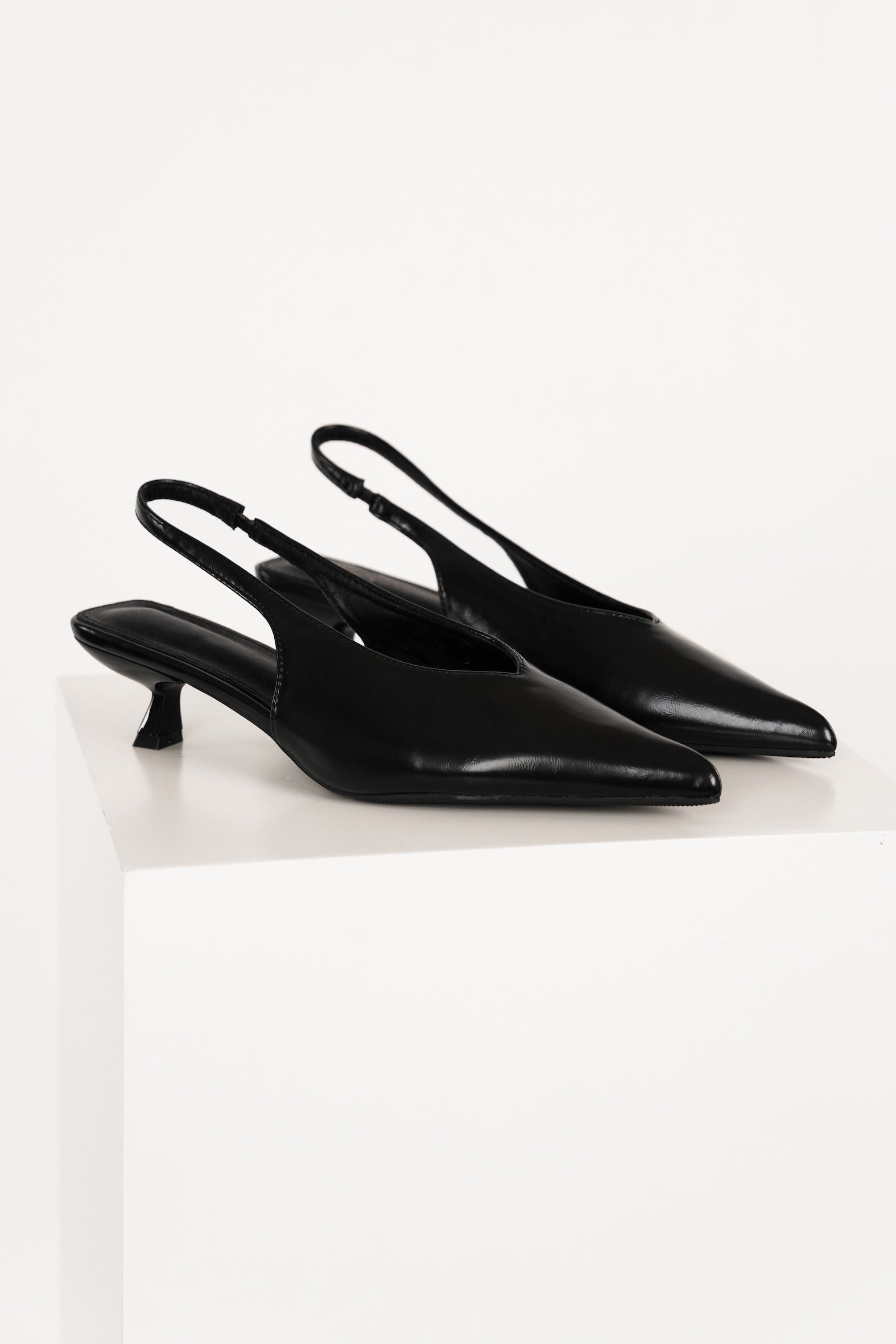 De Yahira Kitten Heels combineren tijdloze elegantie met moderne verfijning. Deze hakken zijn vervaardigd uit een gladde leatherlook stof die een luxe uitstraling geeft, terwijl de puntige neus zorgt voor een slank en vrouwelijk silhouet. Het subtiele enkelbandje met elastisch detail biedt een comfortabele en stabiele pasvorm. Met een hakhoogte van 4,5 cm vormen de Yahira Kitten Heels de perfecte balans tussen stijl en draagcomfort — ideaal voor zowel overdag als in de avond.